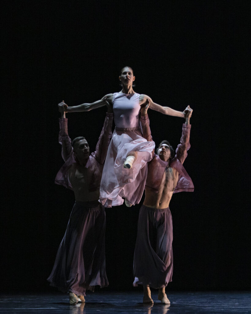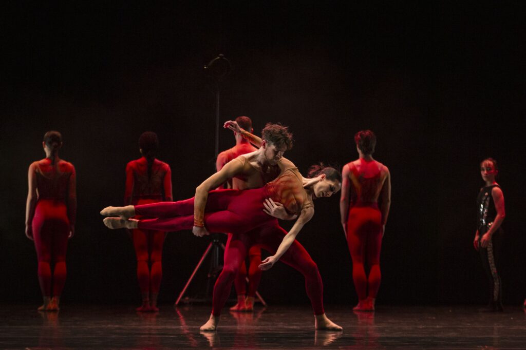 La Cinquena Simfonia, coreografiada per Kevin O’Day, desplega un recorregut físic i emocional a través dels seus quatre moviments. O’Day aprofundeix en els forts contrastos de la partitura i condueix els ballarins per estats sempre canviants: de la intensitat més visceral a la contenció precisa, d’allò subtil a allò explosiu. El públic és convidat a percebre la força, la pressió i l’impacte de la música en els cossos: un espai on l’energia de Beethoven esdevé moviment pur.
